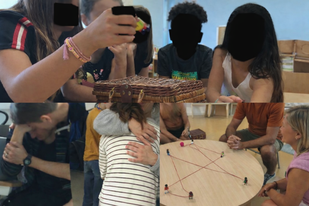 Les exercices prennent rapidement une dimension intime. Les participants sont invités à « consteller » des situations : conflits d’équipe, tensions scolaires, traumatismes personnels. Des membres du groupe incarnent symboliquement des proches, des collègues, parfois même des parties du corps.